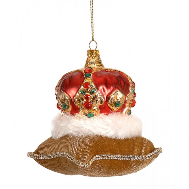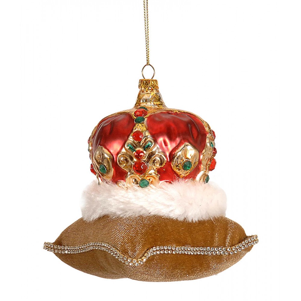 6/36 – 10CM Hanging Glass Red Crown on Gold velvet Pillow