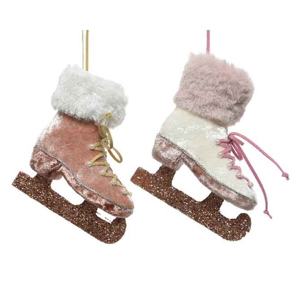 Dai un tocco di colore al tuo Natale con la decorazione Pattini poliestere glitters finta pelliccia 2col ass usa questa decorazione classica e intramontabile per abbellire il tuo albero con stile ed eleganza